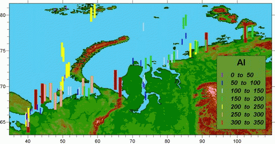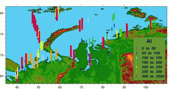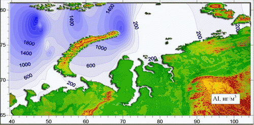 Содержание алюминия в морских аэрозолях Белого, Баренцева и Карского морей