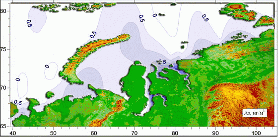 Содержание мышьяка в морских аэрозолях Белого, Баренцева и Карского морей