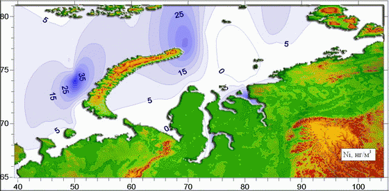 Содержание никеля в морских аэрозолях Белого, Баренцева и Карского морей