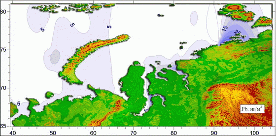 Содержание свинца в морских аэрозолях Белого, Баренцева и Карского морей
