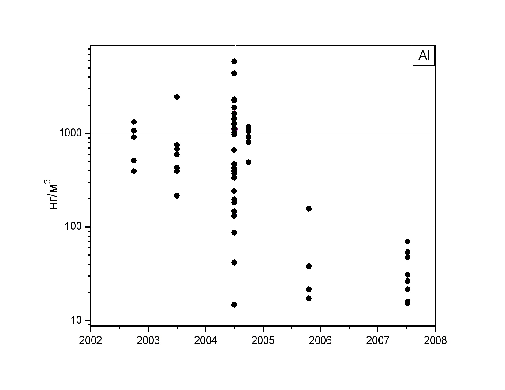 Содержание алюминия в аэрозолях российского побережья Черного моря
