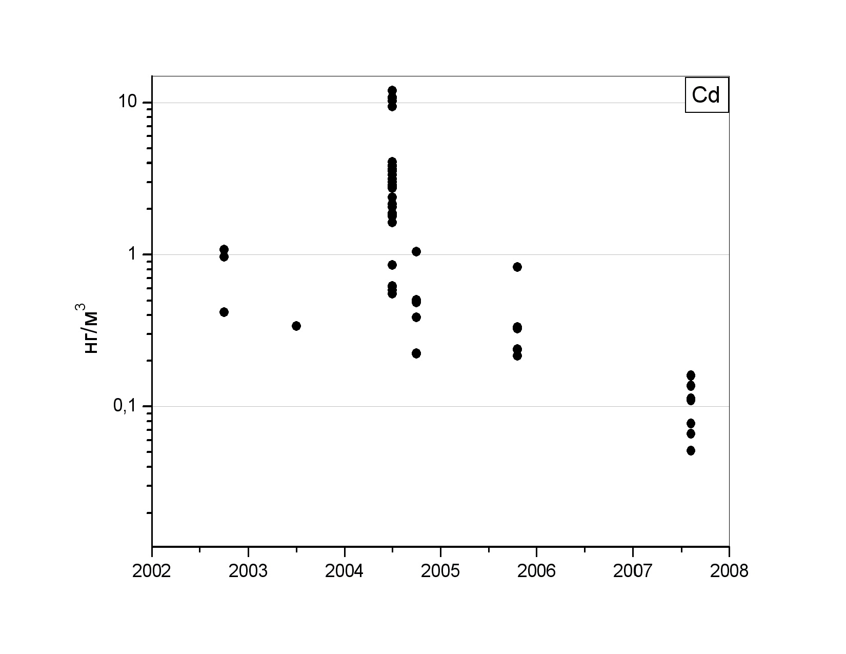 Содержание кадмия в аэрозолях российского побережья Черного моря