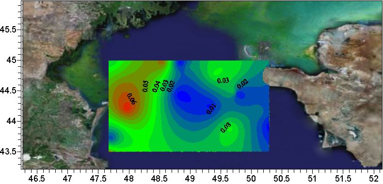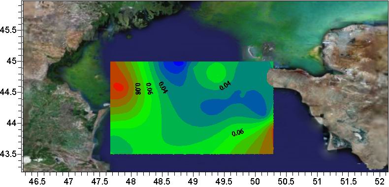 Концентрация взвешенного вещества летом 2006 года, ПМС толщиной 1мм