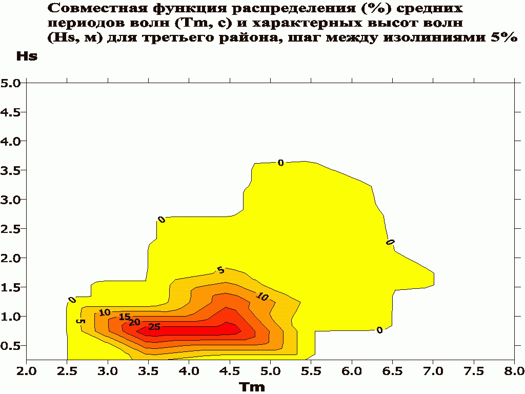 Совместная функция распределения средних периодов волн и характерных высот волн в Южном Каспии