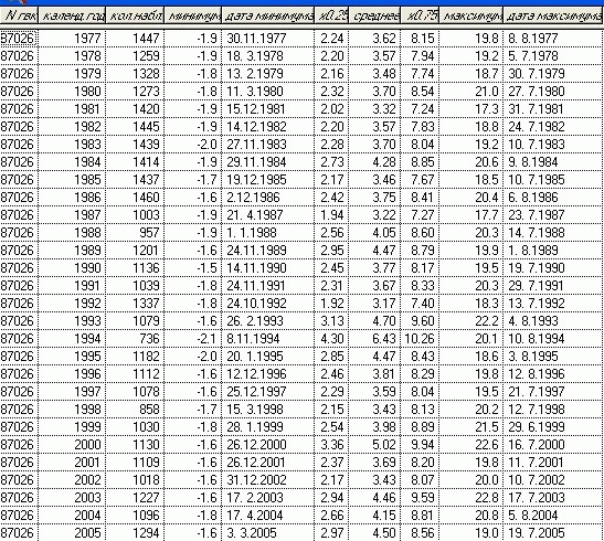 Межгодовая изменчивость температуры воды. Гридино